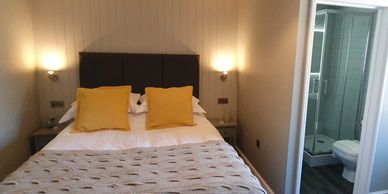 Located at the rear of the property, this cosy room features a superking-sized bed that can be separated into two singles on request. The large ensuite bathroom has a double-width shower cubicle.